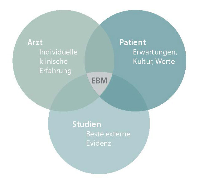 EBM erfordert die Integration der wissenschaftlichen Informationen mit der klinischen Erfahrung und den Patientenwünschen, um jeden einzelnen Kranken nach dem „Stand des Wissens“ optimal zu behandeln.